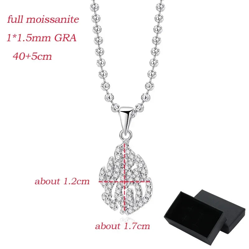 This necklace features a stunning round-cut moissanite in D color, the whitest, most brilliant stone grade available. With a clarity rating of VVS1 and an excellent cut, the gemstone is designed to deliver the kind of brilliance and fire you'd expect from the finest South African diamonds. It’s been tested and approved to pass the diamond test, ensuring confidence in every sparkle.