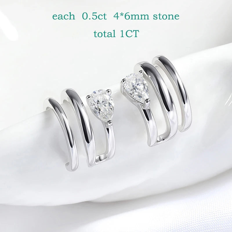 You will receive one pair of pear-cut moissanite clip earrings, beautifully packaged in a deluxe gift box. The set also includes two GRA certificates to confirm the authenticity and superior grading of the moissanite stones, giving you complete peace of mind with your purchase.