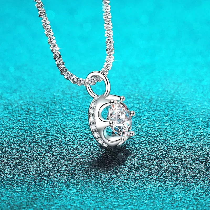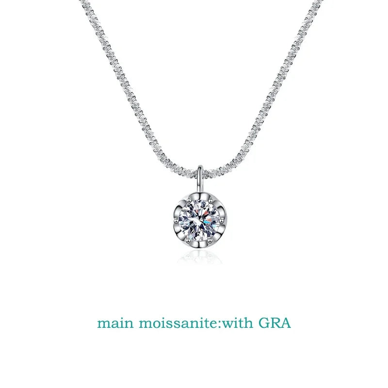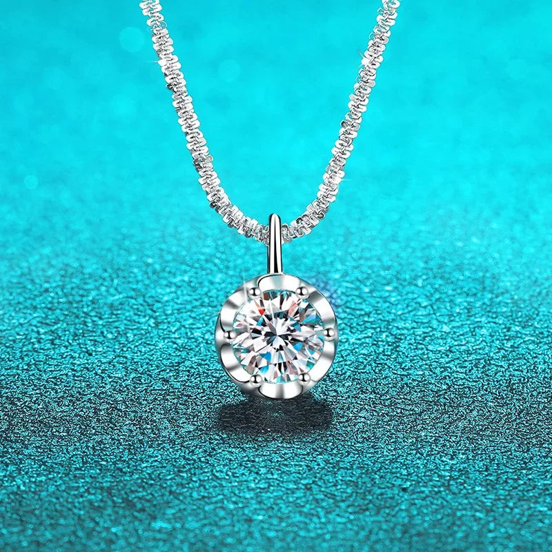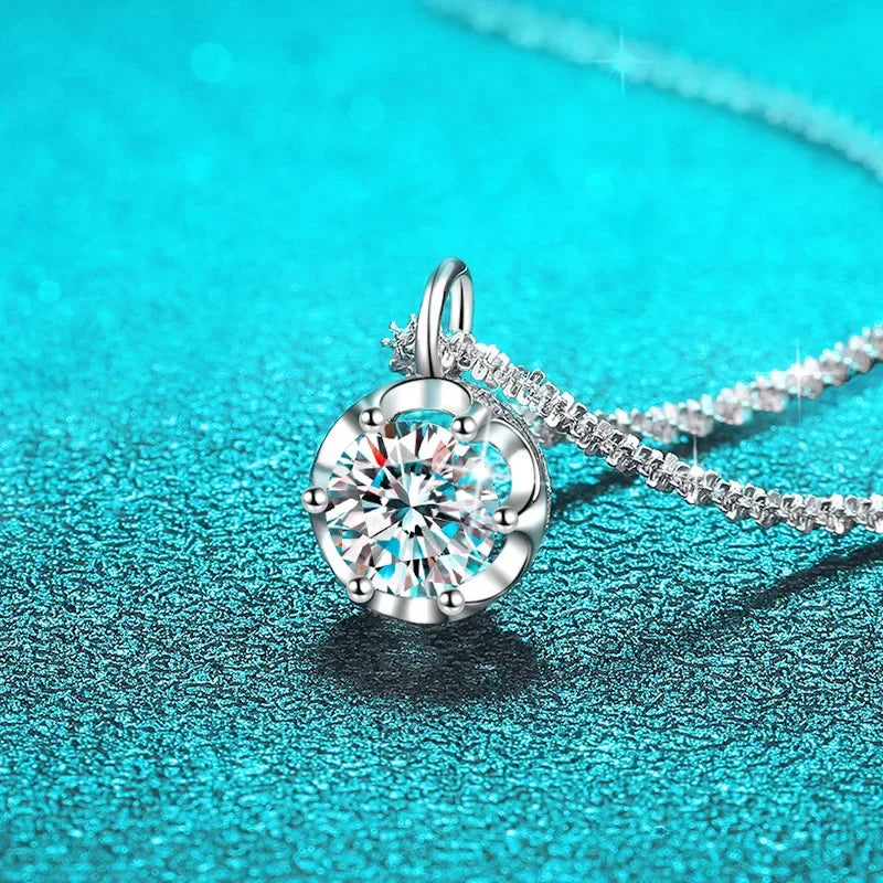 1CT–2CT D Color Certified Moissanite Pendant Necklace – 925 Sterling Silver, 18K White Gold Plated