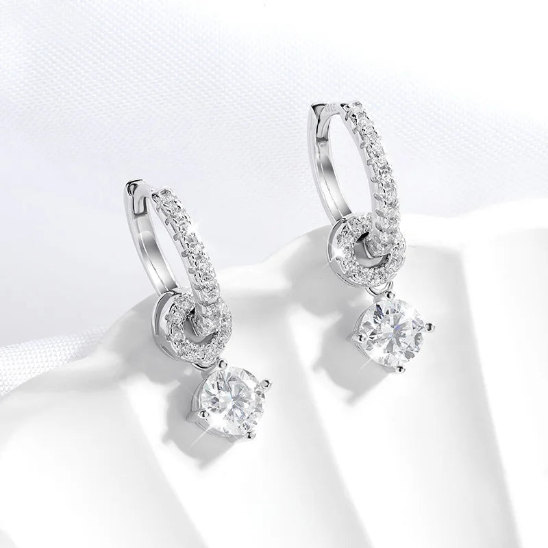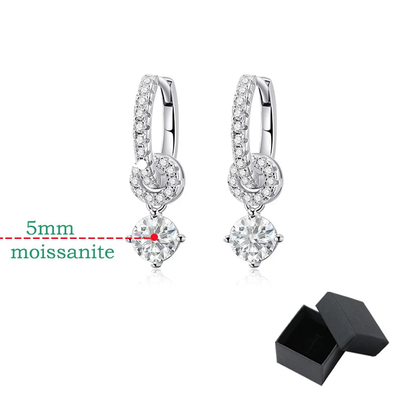 Each earring features a sparkling 0.5CT moissanite stone (5mm in diameter), totaling 1CT per pair. Graded VVS1 for clarity and D for color, the stones are as clear and colorless as premium natural diamonds. Their excellent cut ensures maximum brilliance and fire, offering an eye-catching sparkle with every movement.