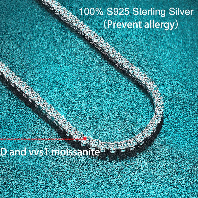 You’ll receive one exquisite moissanite tennis necklace made of 100% 925 sterling silver with 18K white gold plating, fully encrusted with round brilliant-cut VVS D-color moissanite stones. It comes packaged in a luxury gift box with a silver cloth for care, and includes a third-party GRA certificate to verify gemstone authenticity.