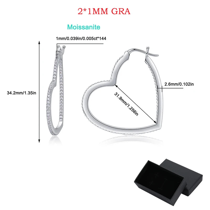 3.2CM Heart Moissanite Hoop Earrings for Women