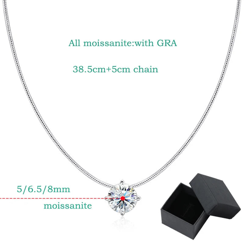 Your order includes one 925 sterling silver moissanite pendant necklace, featuring a brilliant D color, VVS1 clarity moissanite (available in 0.5CT to 2CT). The necklace is finished with 18k white gold plating and includes a premium gift box, a silver polishing cloth, and a GRA certificate for moissanite stones.
