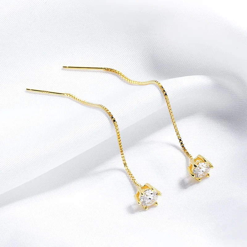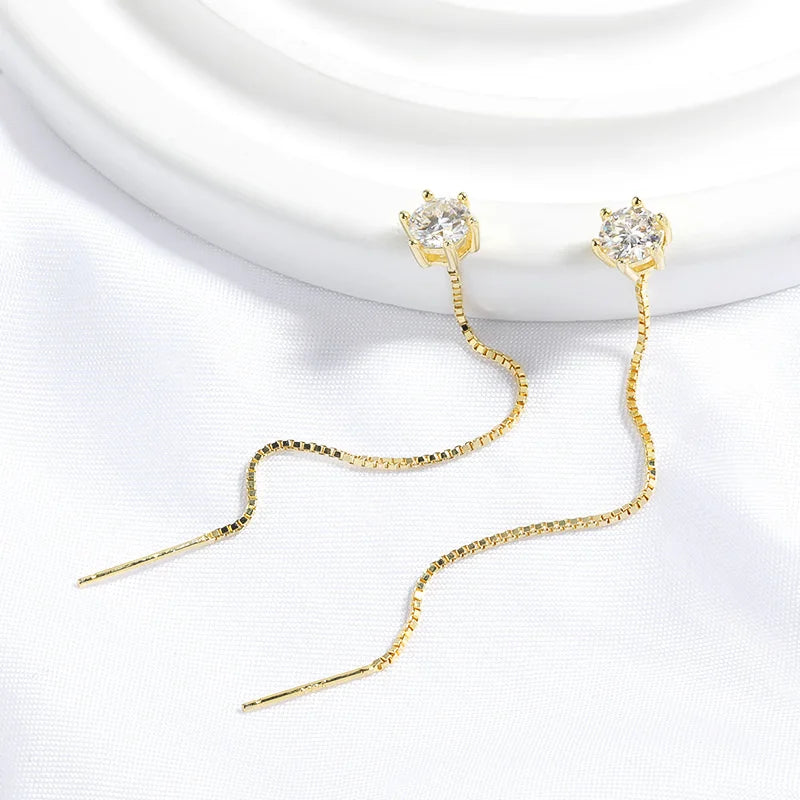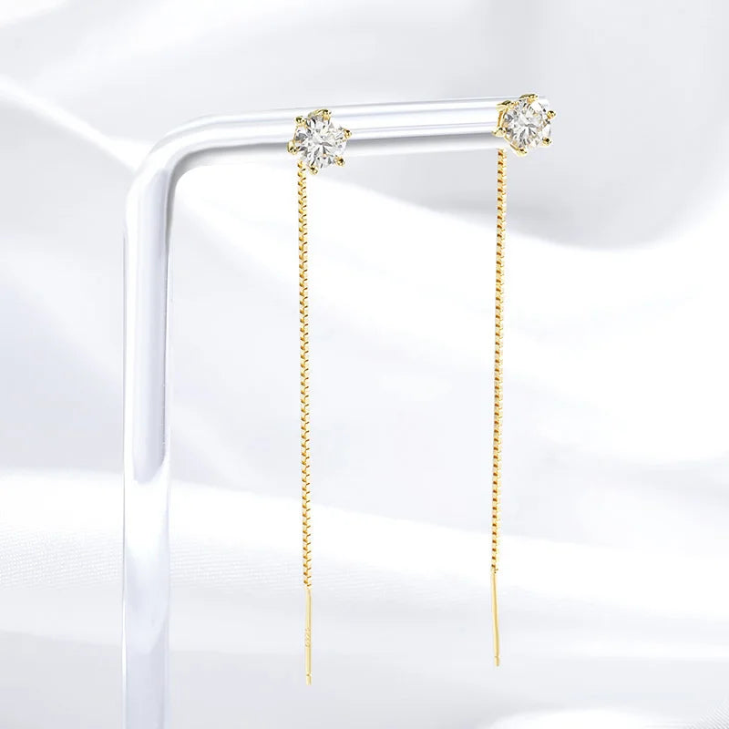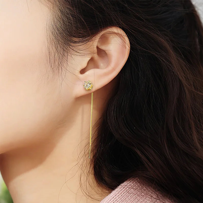 We present the Tassel Moissanite Drop Earrings, designed to capture elegance with subtle movement and radiant sparkle. These earrings showcase dazzling moissanite stones in a delicate drop design, crafted from pure S925 sterling silver and finished with a luminous layer of 18k gold plating. Ideal for special occasions or adding a touch of refined luxury to everyday wear, these earrings combine sophistication and charm in perfect harmony.