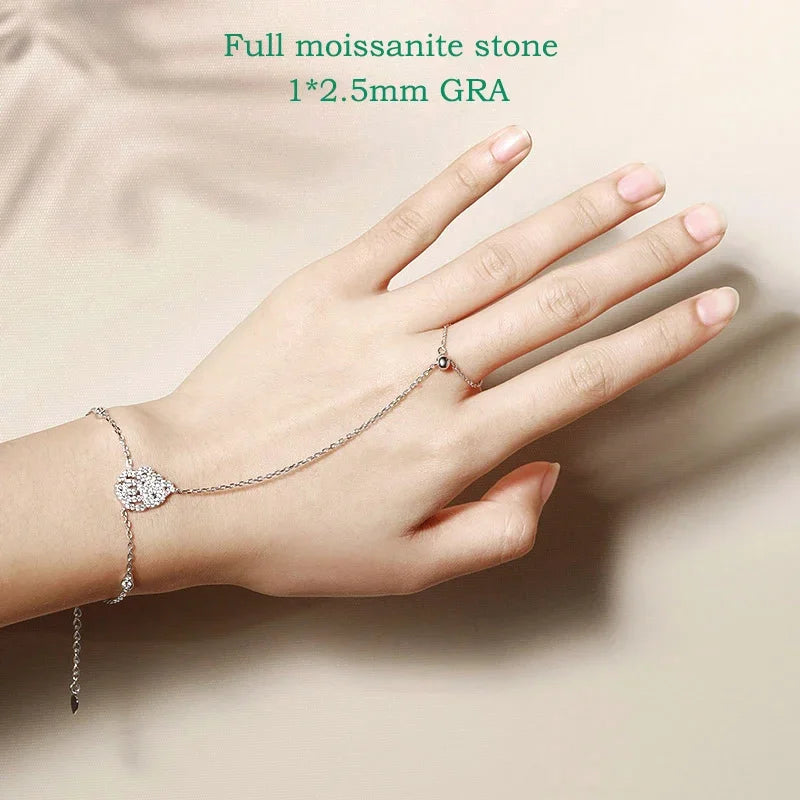 Delicately dazzling, the L’Écrin Bijoux GRA Certified Moissanite Charm Bracelet is designed to bring brilliance to your everyday look. Crafted with 100% 925 sterling silver and encrusted with radiant D color moissanite stones, this adjustable piece blends classic elegance with modern luxury, making it perfect for anniversaries, celebrations, or simply elevating your daily wear.
