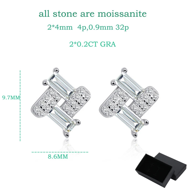 GRA Certified 18k Plated Full Moissanite Emerald Cut Earrings for Women | Bridal Luxury Jewelry