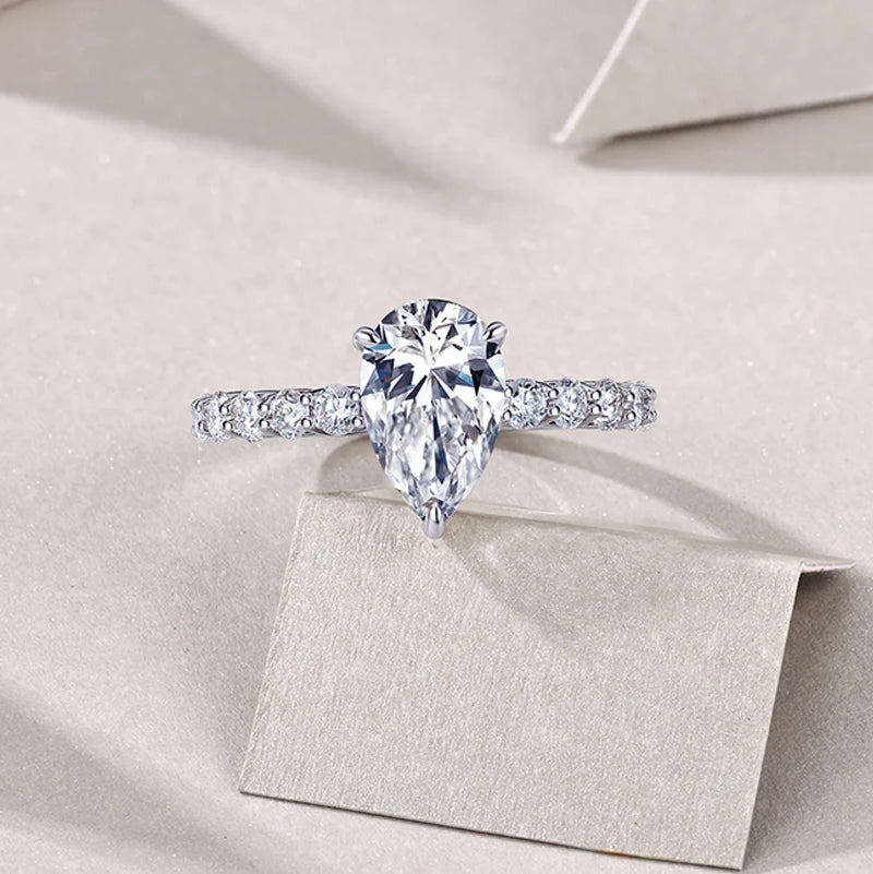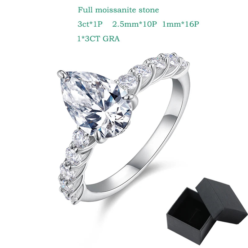 GRA Pear Cut Full Moissanite Ring for Women – Wedding Silver Ring