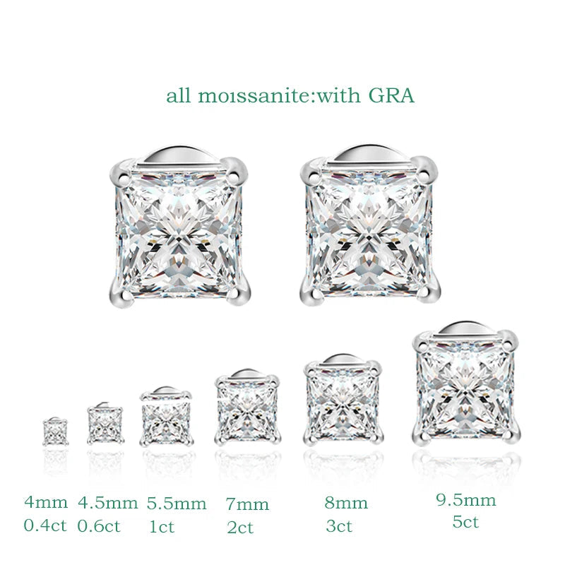 Princess Cut 0.4-5CT Moissanite Stud Earrings for Women Men